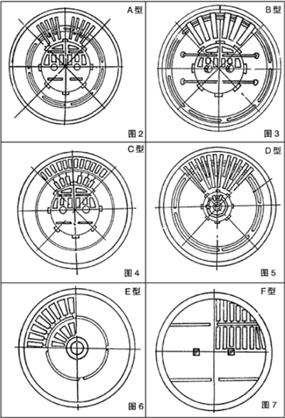 充氣箱在庫內(nèi)排列時(shí),原則上要求實(shí)際排列面積占總面積的比例越大越好,攪拌庫和混合式均化庫中心區(qū)(攪拌區(qū)),對這點(diǎn)要求更為重要,現(xiàn)提供A、B、C、D、E、F六種基本排列形式供選用。