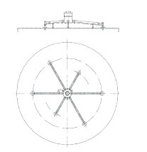 庫頂生料分配是用于生料庫或水泥庫的庫頂作為均勻布料的設(shè)備,來自提升機(jī)等輸送設(shè)備輸送過來的干燥粉狀物料,注入分配罐內(nèi),經(jīng)充氣成流化狀態(tài),通過徑向伸出的空氣輸送斜槽向各點分布,形成多點分料。庫頂物料的分配一般以分配罐直徑作為型號規(guī)格,根據(jù)其出料咀數(shù)量可分為四咀、六咀、八咀三種分配形式,出料咀斜度可按工藝在6°至10°范圍內(nèi)選擇,分配生料能力在技術(shù)參數(shù)表中選取。
