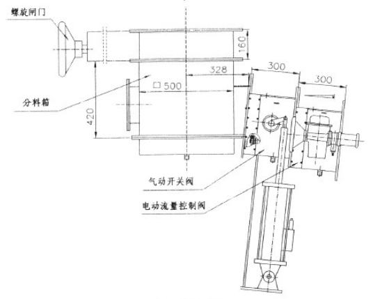 庫(kù)底卸料裝置由庫(kù)底螺旋閥、庫(kù)底分料箱、氣動(dòng)開(kāi)關(guān)閥、電動(dòng)流量控制閥及卸料溜子組成(見(jiàn)圖一),用于水泥生料粉或水泥庫(kù)底卸料。庫(kù)底卸料裝置能自動(dòng)調(diào)節(jié)卸料流量且均勻,其結(jié)構(gòu)合理,操作維護(hù)簡(jiǎn)單方便,可設(shè)三個(gè)下料口,用戶也可選用庫(kù)側(cè)卸料裝置(見(jiàn)圖二)。